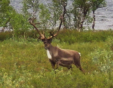 Es war nicht wärmer geworden. Ich fuhr gut eingepackt Richtung norwegische Grenze. Auf dem Weg dort hin sah ich dann die ersten Rentiere. Sie standen rechts in einer Wiese und assen. Ich hielt sofort an und schoss ein paar Fotos. Als ich an die Grenze kam war das Wetter besser geworden. Die Sonne schien und es war angenehm warm. Kurz ein letztes Mal volltanken, die letzten Pfandflaschen abgeben und es ging über die Grenze nach Norwegen.